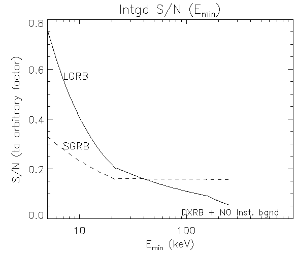 However, if you make a VERY SIMPLE assumption that the background is dominated by the DXRB (it isn't!! There are particles!!!!) you could make a simple argument that you should integrate to high energies because S/N keeps improving: File:simplified_snr_vs_Emax.png
