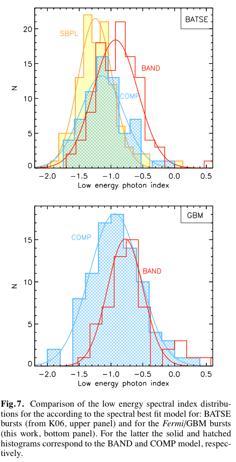 Here is four years of GBM data BEST FIT N(E) slopes, a, such that log slopes = 1+a. NOTE that the figure is labeled “low-energy index” which is completely WRONG since an index implies a minus sign.